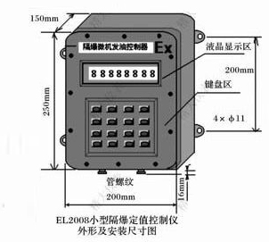 EL-2008隔爆批量控制器是一種新型的智能化隔爆定量控制儀表,它采用高性能微處理器,是一種真正的單片機系統。它采用背光式液晶顯示器顯示,不受光線(xiàn)的影響,結構簡(jiǎn)單,可靠性高,可直接安裝于防爆操作現場(chǎng)、油罐車(chē)等需要現場(chǎng)防爆定量計量的場(chǎng)合。與各種脈沖輸出流量計配套可對流量進(jìn)行質(zhì)量或體積量的定量灌裝、計量和控制。該儀表可通過(guò)面板置入參數,實(shí)施控制,具有斷電保護功能,是現代控制的理想單元儀 表。